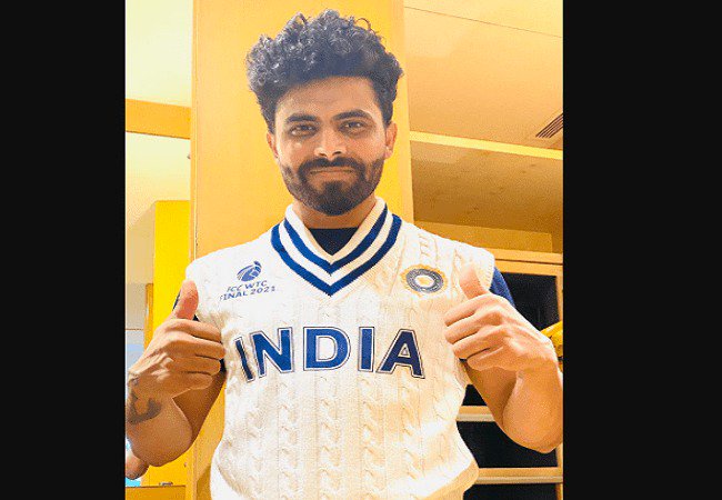 Ravindra jadeja took to twitter to share the sweater of india's retro test uniform, specially designed for the wtc final against new zealand, which will begin on june 18 in southampton.